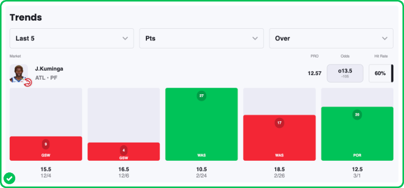 - Hawks vs Bucks pick: Jonathan Kuminga Over 14.5 Points