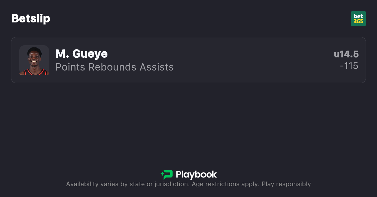 Pick: Mouhamed Gueye Under 14.5 Points, Rebounds, & Assists (-110)