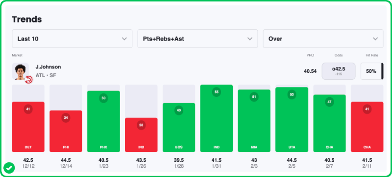 I look for Johnson to lead the way, as he already has a 40-point game against the 76ers, as well as one of his 10 triple-doubles this season.