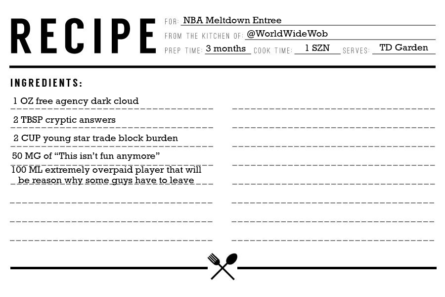 The Celtics can and will likely turn it around at some point, so this recipe formulation is not meant to be served as a death certificate or dish best served cold by any means.
