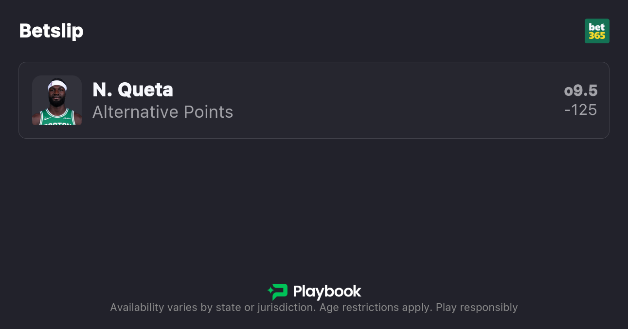 - Neemias Queta Over 9.5 Points (-125, bet365)