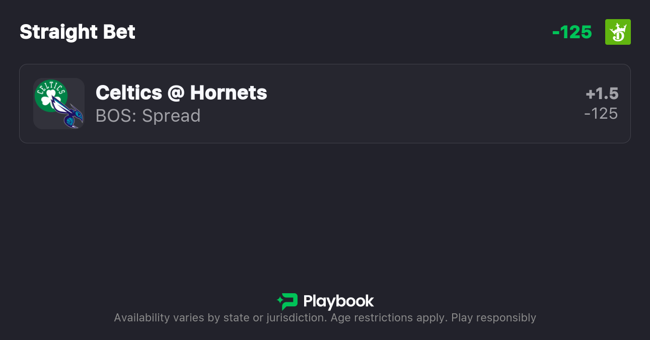 - Celtics vs Hornets pick: Celtics -1 (-105)
