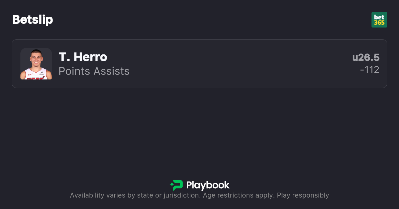 Pick: Tyler Herro Under 26.5 Points + Assists (-112)