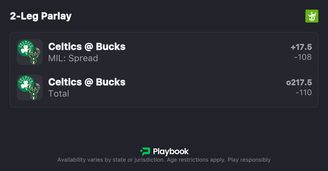 My Bucks vs. Celtics best bets are on Milwaukee to cover the spread (+17.5) and the game to go over 217.5 total points. Make sure to find the best odds by checking our live NBA odds page.