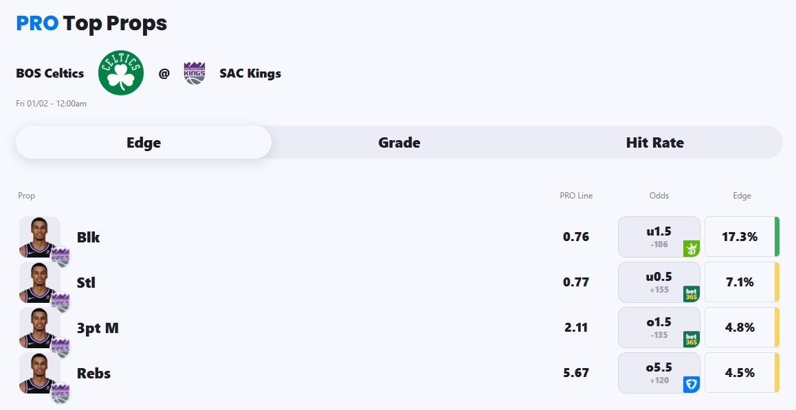 - Celtics vs Kings pick: Keegan Murray Under 1.5 Blocks (-186)