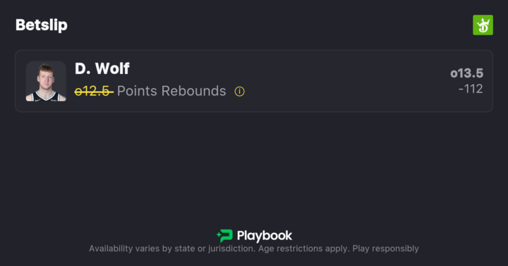- Danny Wolf Over 12.5 Points & Rebounds (-120)