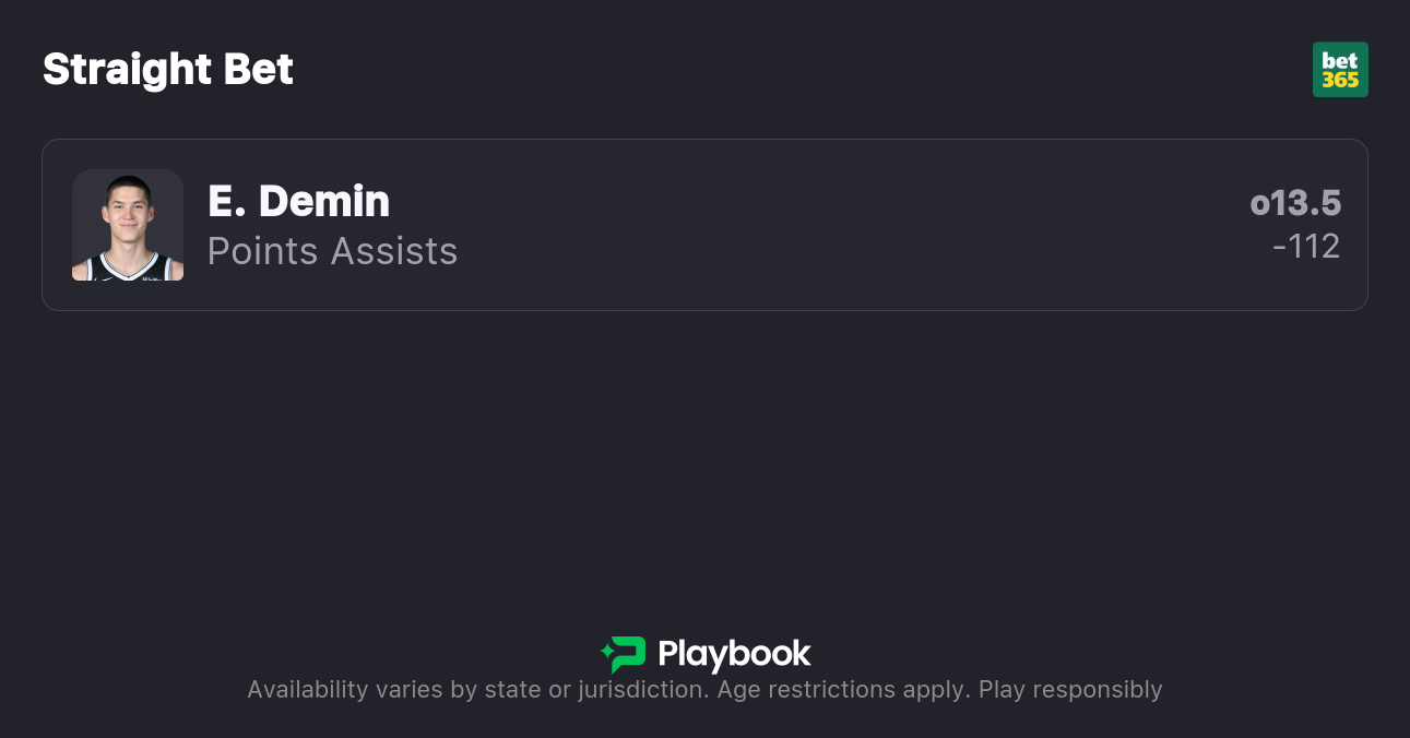 - Egor Demin Over 13.5 Points & Assists (-112)