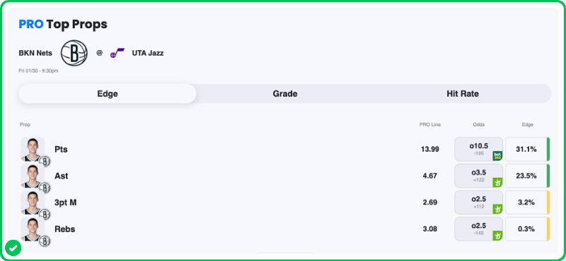- Nets vs Jazz pick: Egor Demin Over 13.5 Points & Assists (-112)