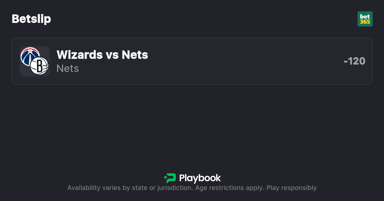 The Nets are 1.5-point favorites over the Wizards on the spread (Nets -1.5), with the over/under set at 226 total points. Brooklyn is a -120 favorite to win outright on the moneyline, while Washington is +100 to pull off the upset.