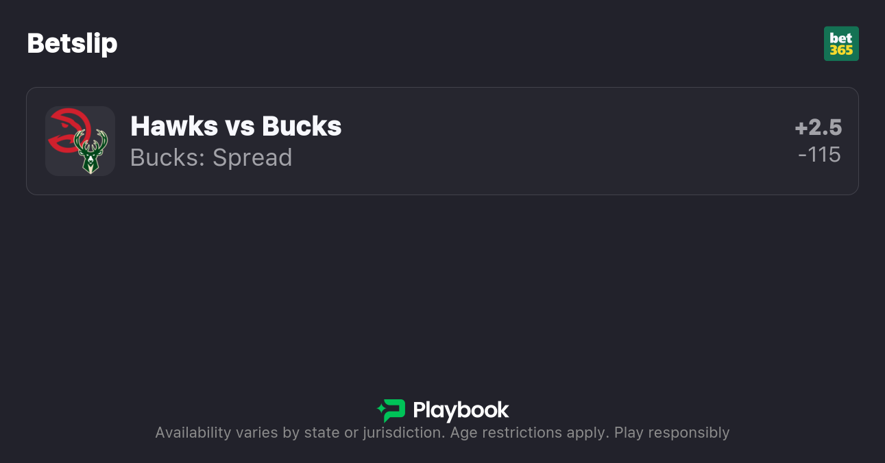 - Bucks vs Hawks pick: Bucks +2.5 (-115)
