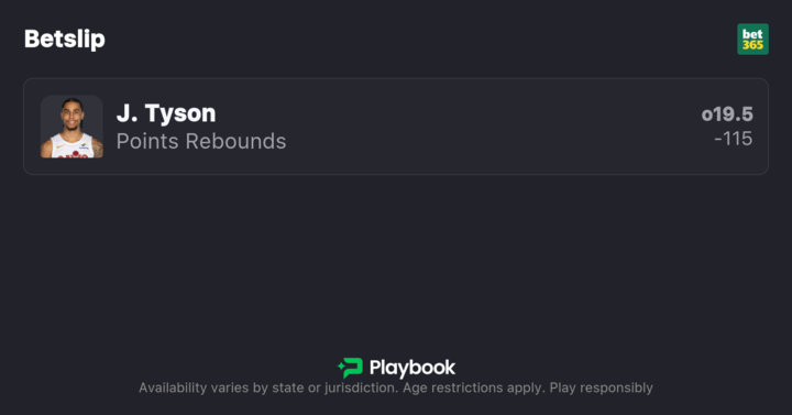 Pick: Jaylon Tyson Over 19.5 Points + Rebounds (-115)