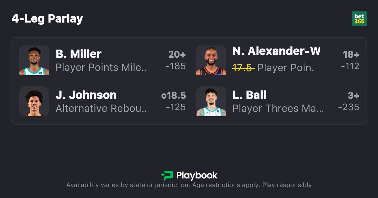 Brandon Miller 20+ Points / LaMelo Ball 3+ Three-Pointers Made
