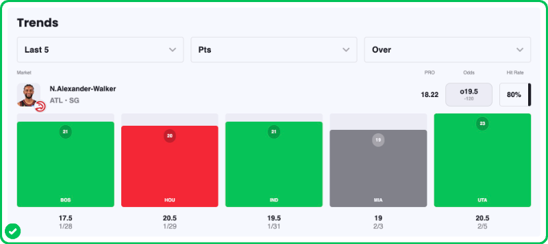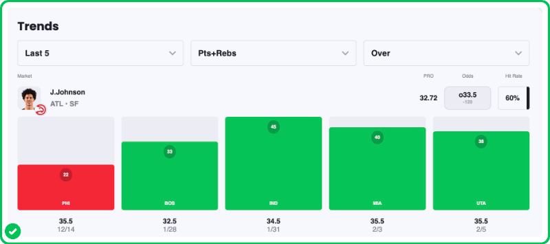 - Jalen Johnson Over 18.5 Rebounds + Assists