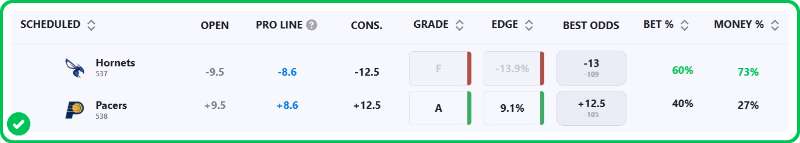 The Hornets are 12.5-point favorites over the Pacers on the spread (Hornets -12.5), with the over/under set at 229 total points. Charlotte is a -800 favorite to win outright on the moneyline, while Indiana is +550 to pull off the upset.
