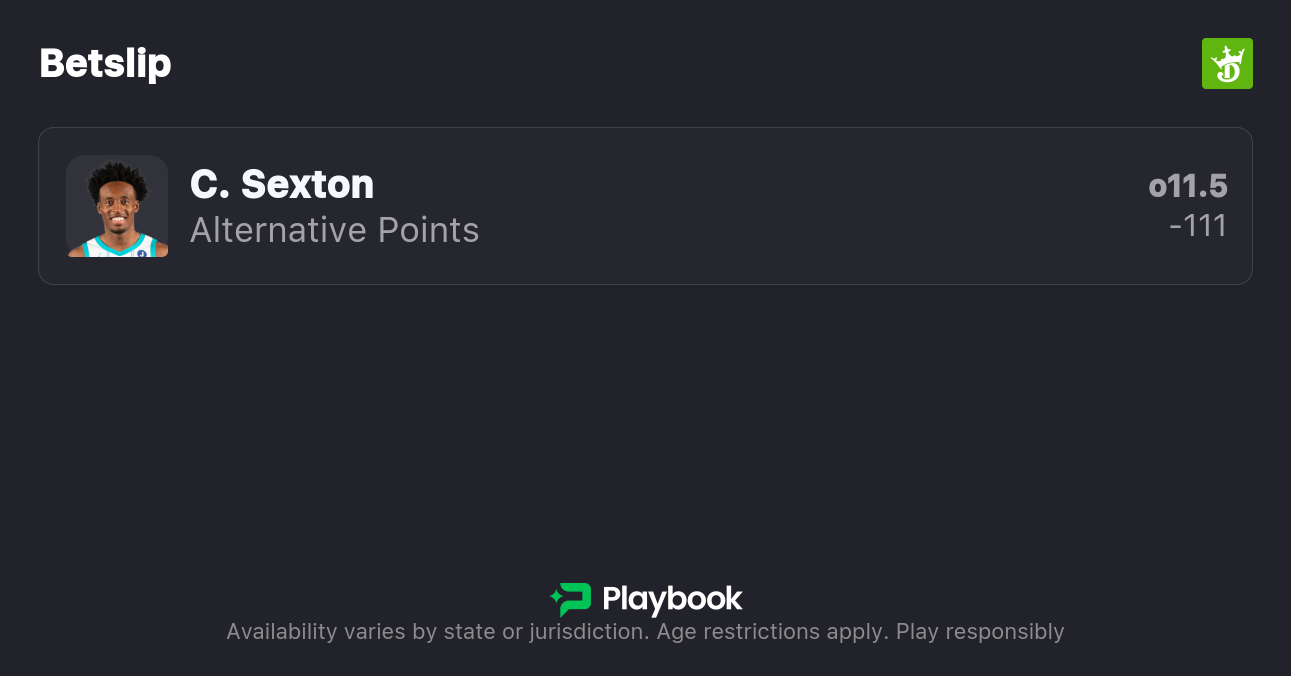 - Hornets vs Thunder pick: Collin Sexton Over 11.5 points (-111)