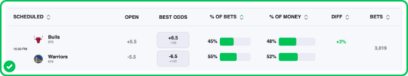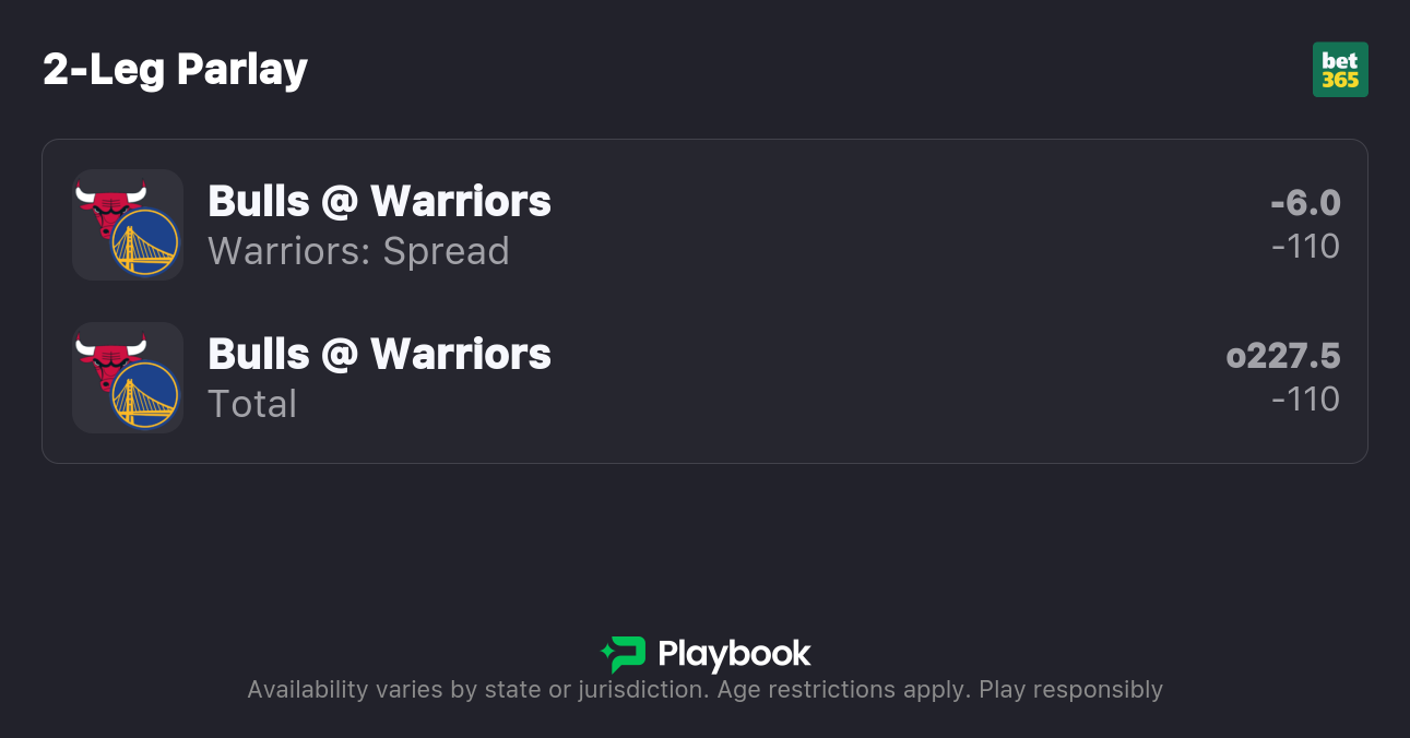 The Warriors are 6-point favorites over the Bulls on the spread (Warriors -6), with the over/under set at 227.5 total points. Golden State is a -240 favorite to win outright on the moneyline, while Chicago is +195 to pull off the upset.