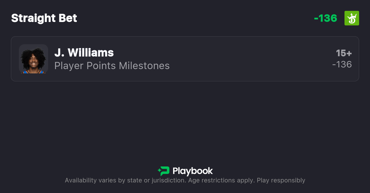 Pick: Jalen Williams 15+ Points (-136)