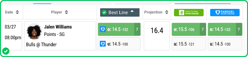 My Thunder vs. Bulls best bet is on Jalen Williams to score 15+ points. Make sure to find the best odds by checking our live NBA odds page.