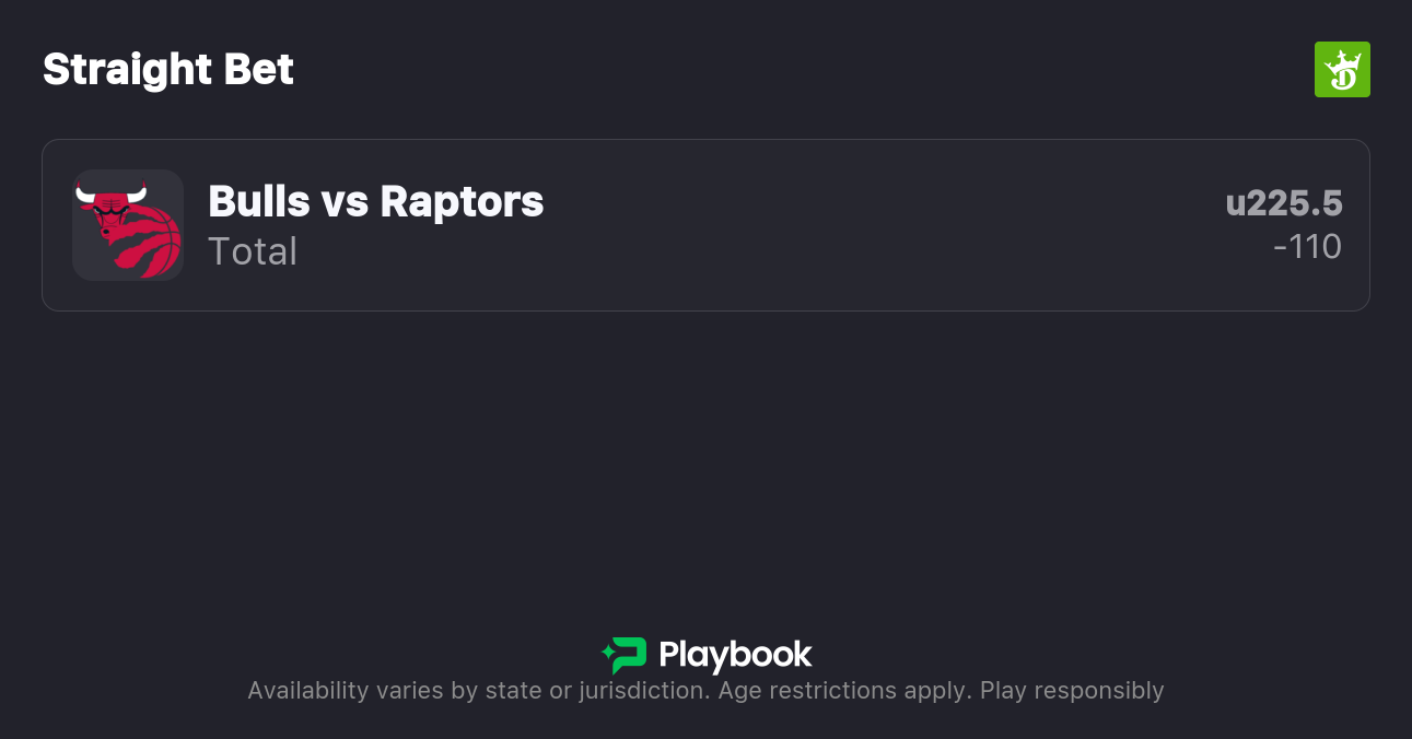 - Bulls vs Raptors pick: Under 225.5 (-110)