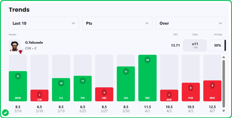 - Bulls vs Wizards pick: Guerschon Yabusele Over 11.5 Points (-130)