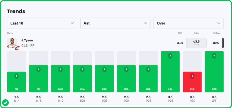 - Jaylon Tyson 3+ Assists