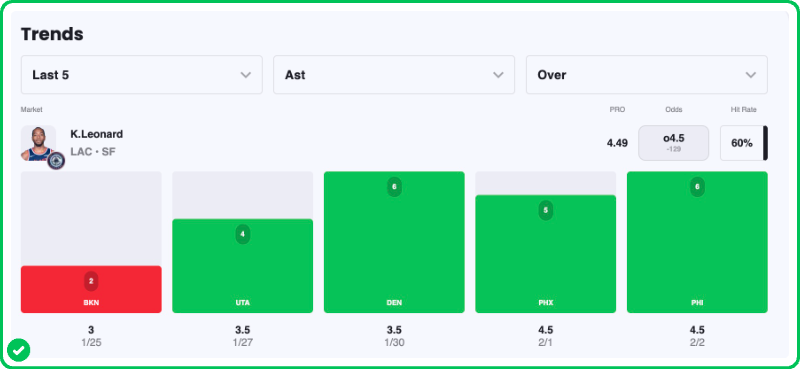- Kawhi Leonard 4+ Assists