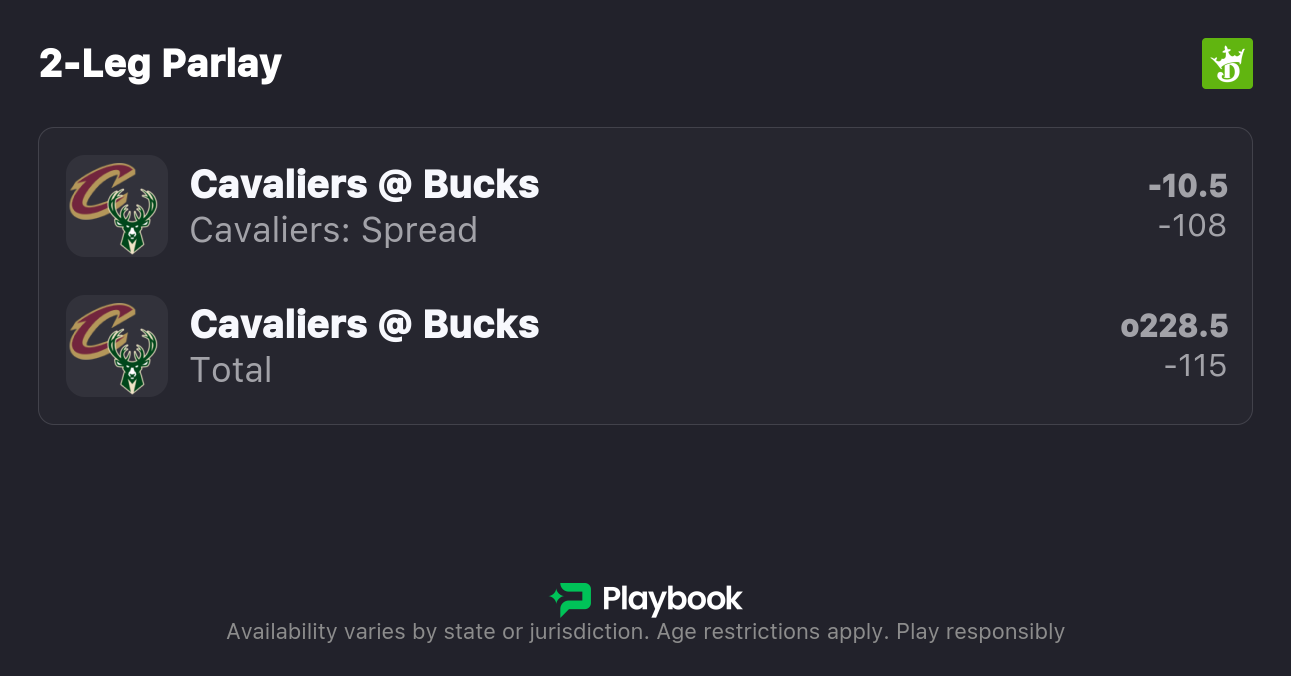 The Cavaliers are 10.5-point favorites over the Bucks on the spread (Cavaliers -10.5), with the over/under set at 228.5 total points. Cleveland is a -470 favorite to win outright on the moneyline, while Milwaukee is +360 to pull off the upset.