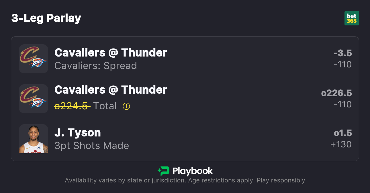 - Cavaliers vs Thunder picks: Cavaliers -3.5 (-110), Over 226.5 (-110)