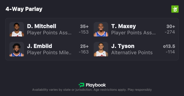 These teams are 9-1 to the over in their last 10 meetings, which should come as no surprise given the explosive scorers on both sides, particularly Donovan Mitchell and Tyrese Maxey.