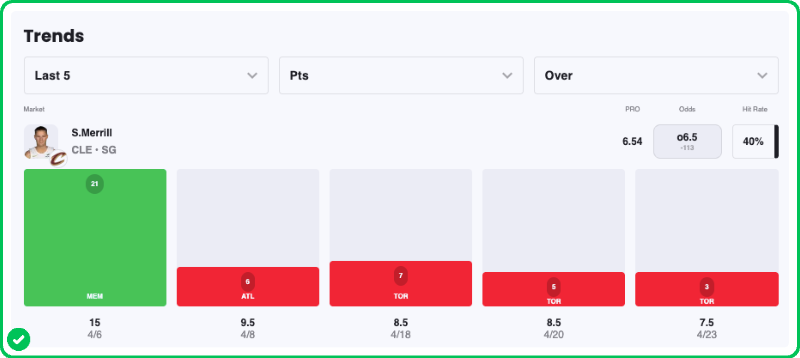 Merrill went under 6.5 points in the last two games and only had two catch-and-shoot opportunities.