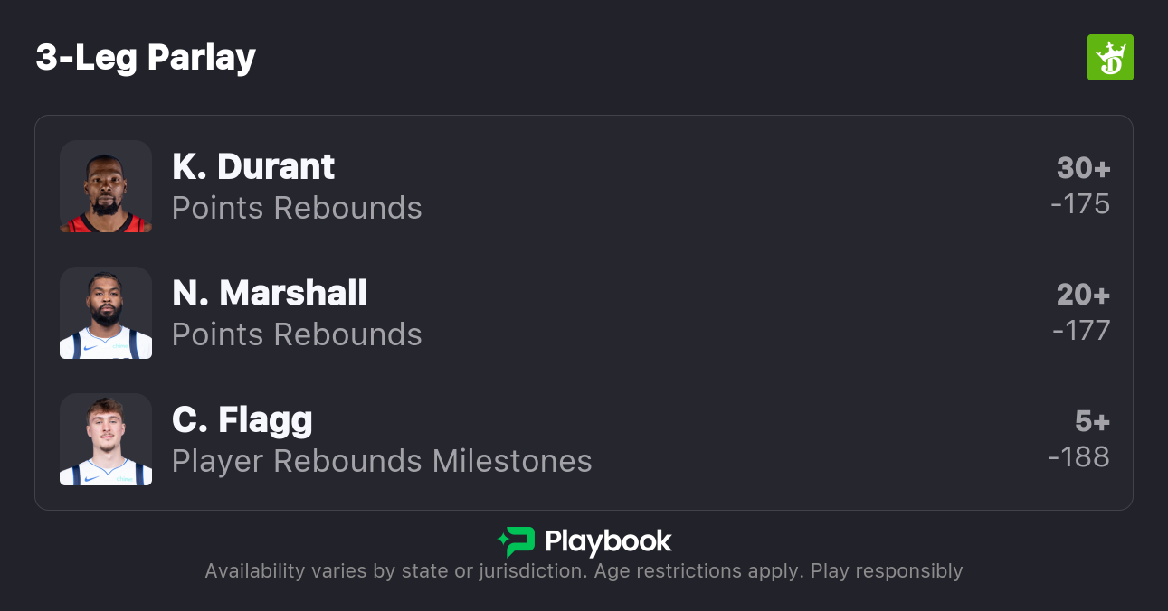 Flagg should help him on the glass as he has had five rebounds in all three games against the Rockets this season.