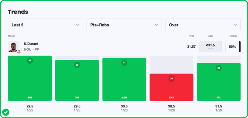 Meanwhile, Durant is averaging 33.8 PR over his last 10 games. He has had at least 30 in six of those games.