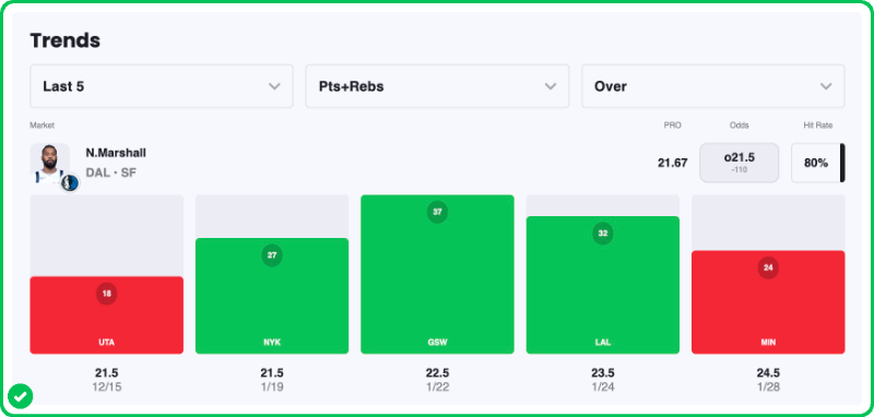 As a result, Marshall has recorded 22 PR in seven of his last eight and eight of his past 11 games.