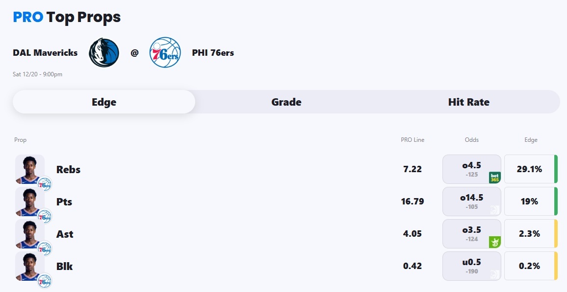- Mavericks vs 76ers pick: VJ Edgecombe Over 4.5 Rebounds (-125)
