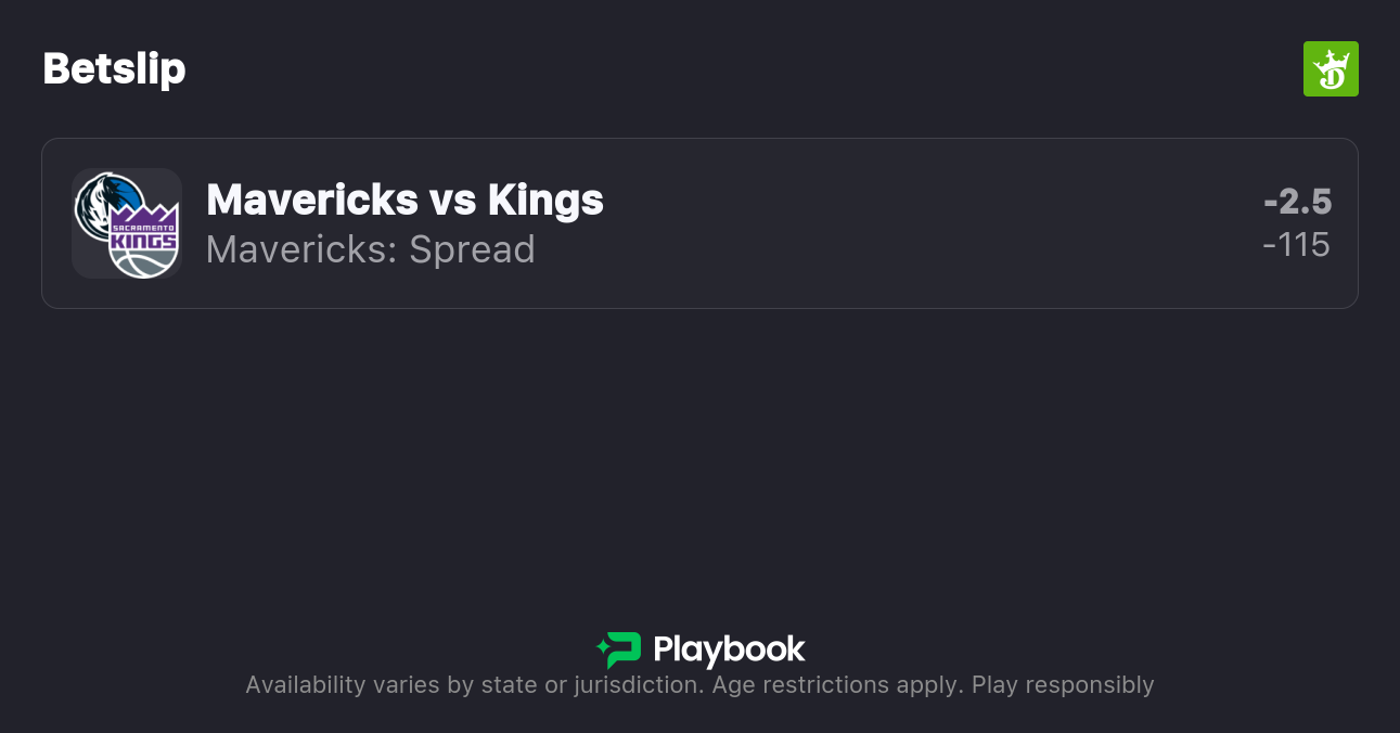 - Mavericks vs Kings pick: Mavericks -2.5 (-115)