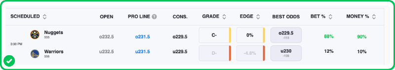 My second Warriors vs. Nuggets betting prediction is on the Over at 229.5 total points.