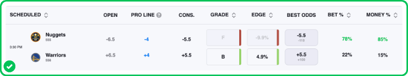 My first Warriors vs. Nuggets betting prediction is on Golden State to cover the spread at +5.5.
