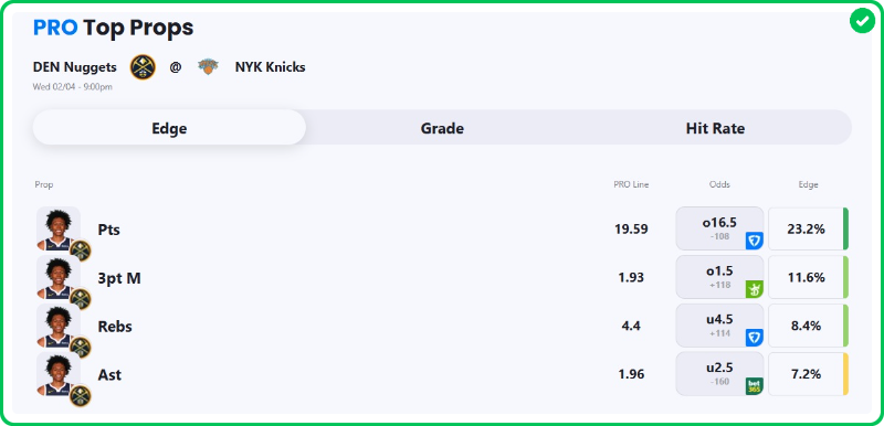 My Knicks vs Nuggets best bet is on Peyton Watson over 18.5 points + assists. Make sure to find the best odds by checking our live NBA odds page.