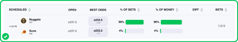 My Suns vs. Nuggets best bet is on the game to stay Under 233.5 total points. Make sure to find the best odds by checking our live NBA odds page.