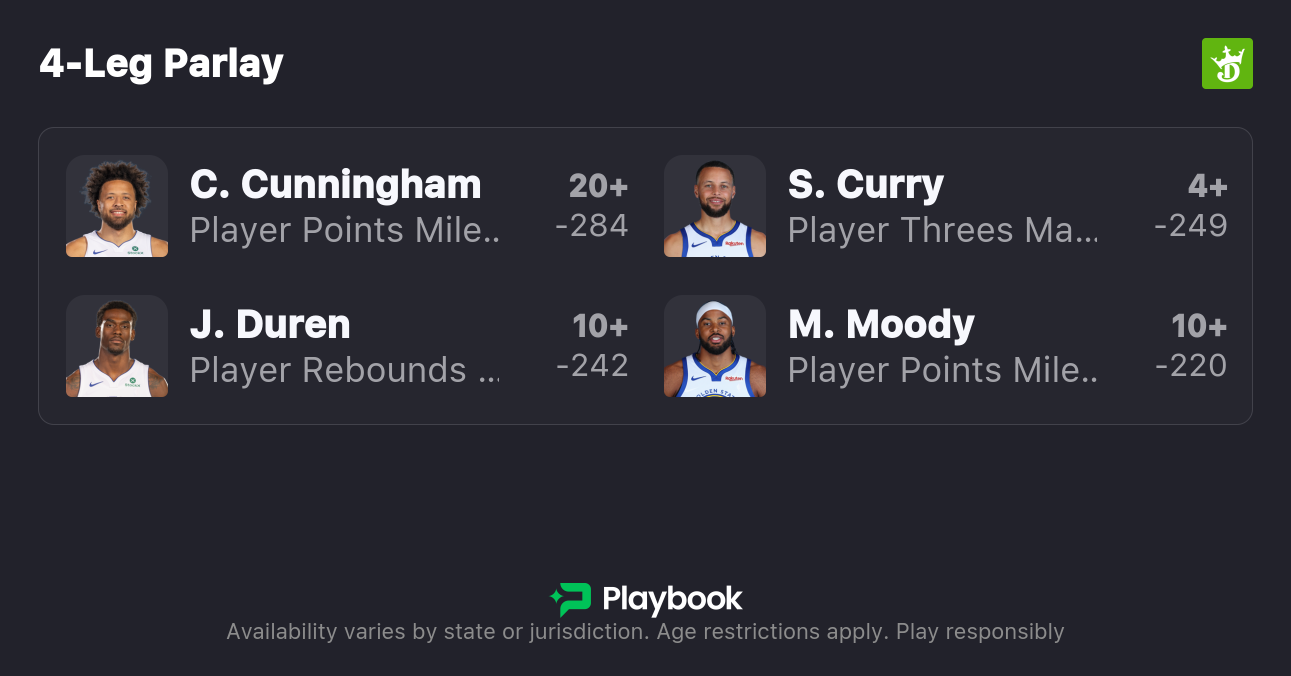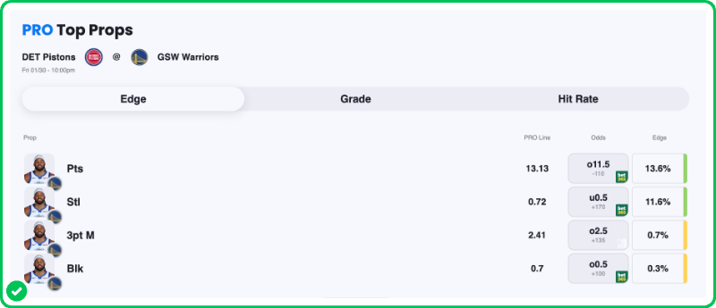 Ausar Thompson will likely be the primary defender on Curry tonight, while the Pistons may look to hide Duncan Robinson on Moody, giving him an advantageous matchup.