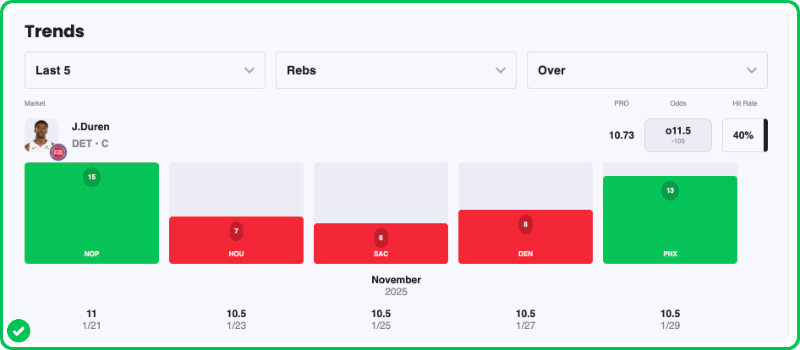 - Jalen Duren 10+ Rebounds