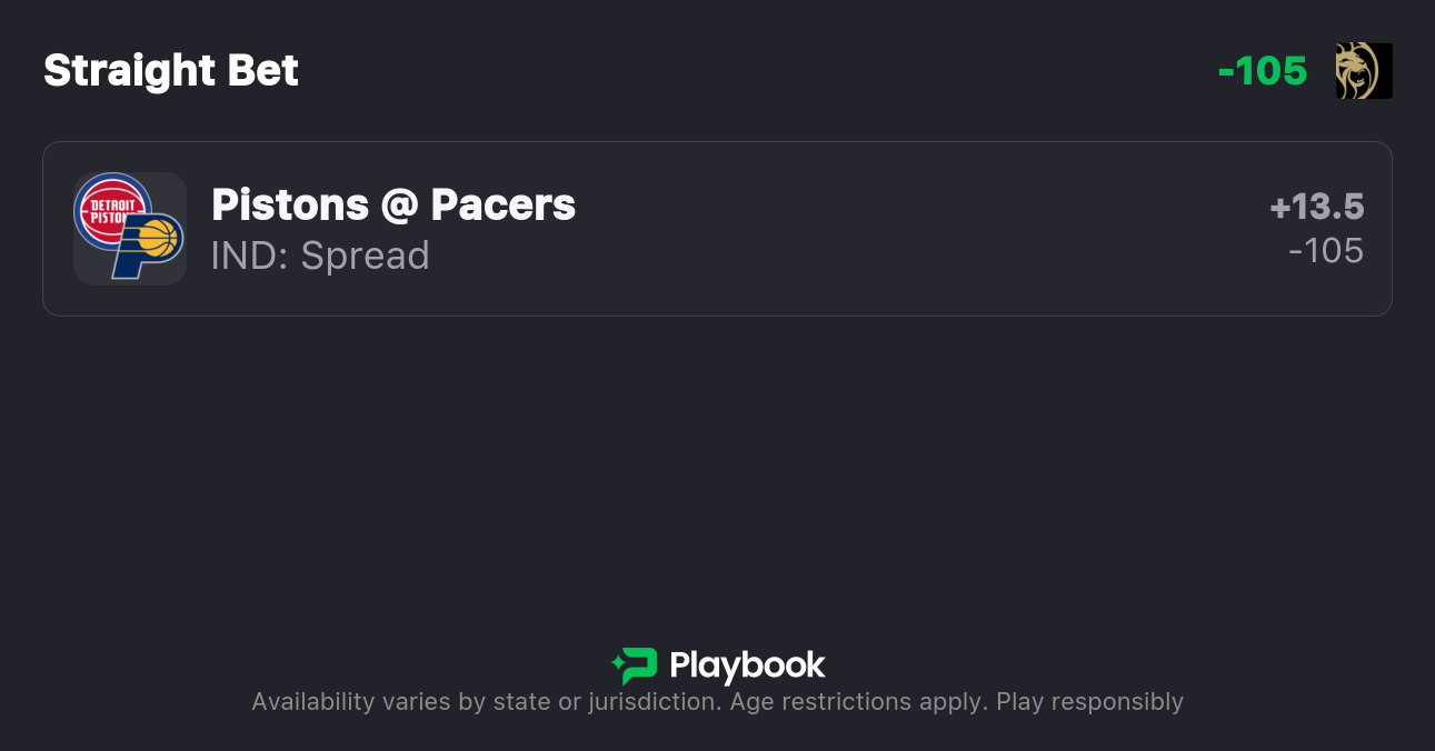 - Pistons vs Pacers pick: Pacers +13.5 (-105)