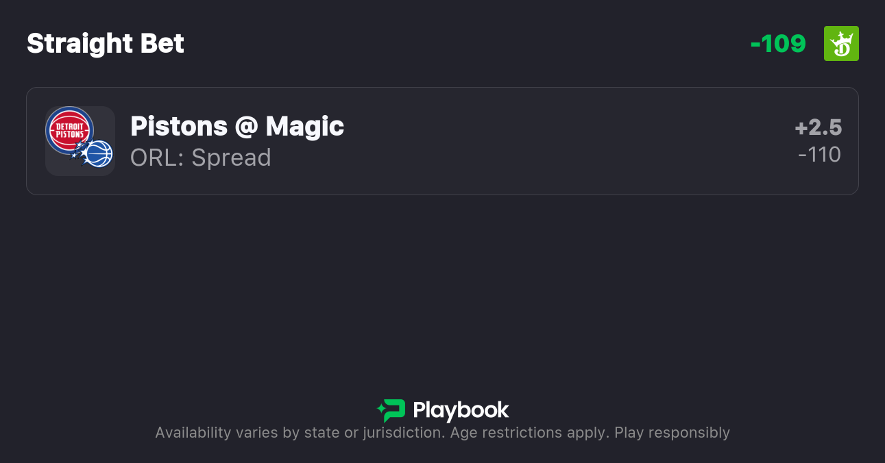 - Pistons vs Magic pick: Magic +2.5 (-110)