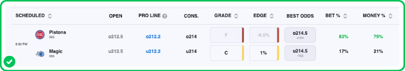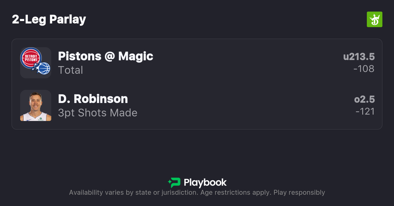 - Pistons vs Magic pick: Under 213.5 (-108)