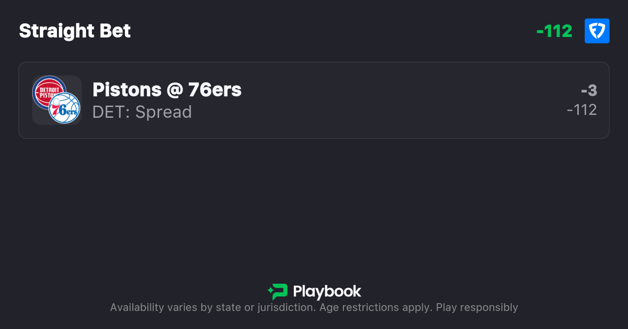 - Pistons vs 76ers pick: Pistons -2.5 (-114)
