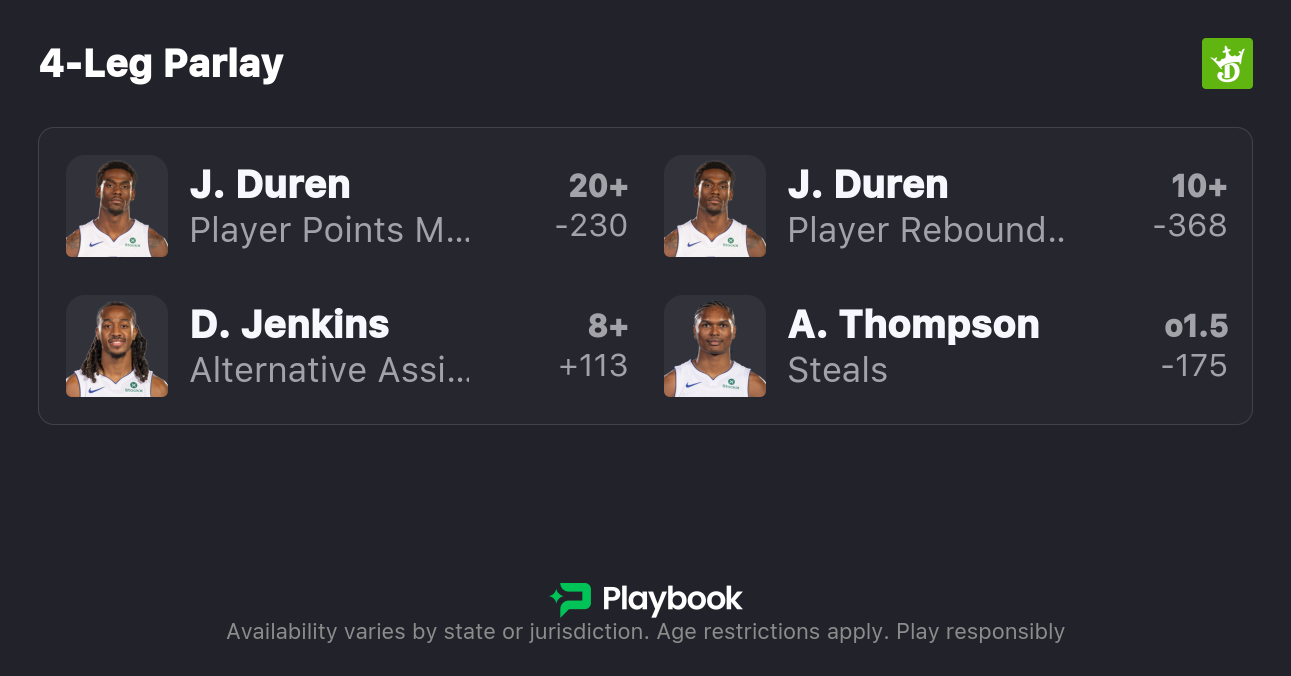 Duren has seen a slight bump in usage without Cunningham, rising to 26.1% over his last 10 games.