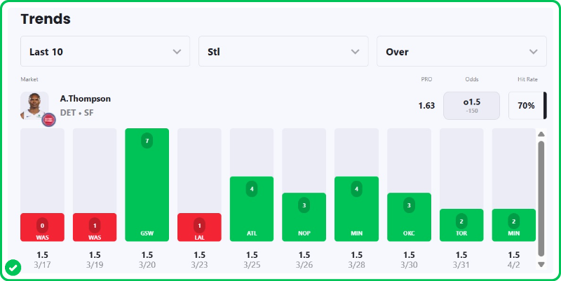 - Ausar Thompson Over 1.5 Steals
