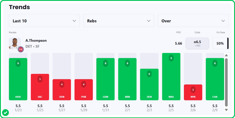 - Ausar Thompson 6+ Rebounds
