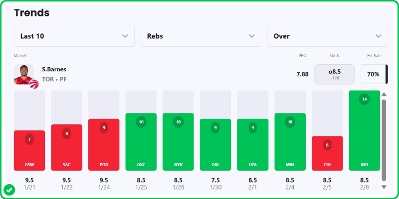 - Scottie Barnes 8+ Rebounds