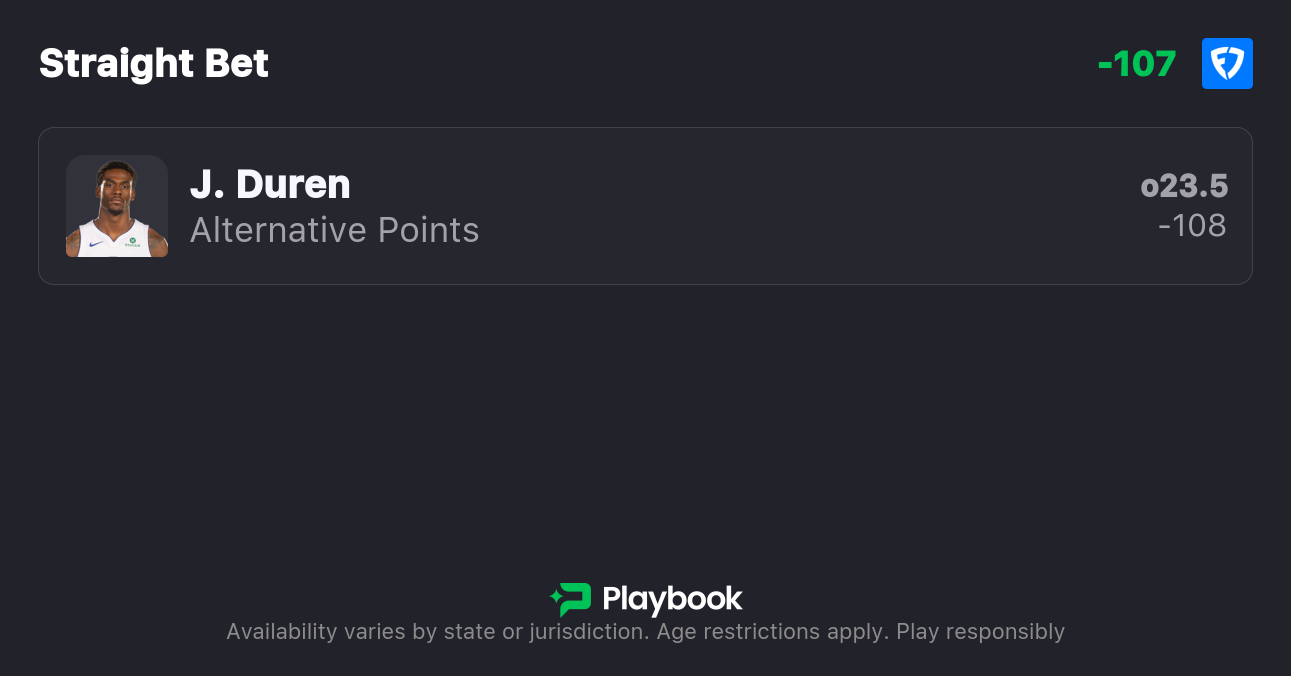 My best bet for tonight's matchup is Jalen Duren to score over 23.5 points.
